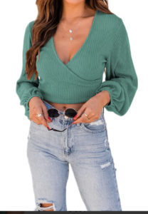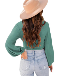 Cute Crop Top Long Sleeve Solid Sexy Slim Top Shirt Drawstring Ruched T-Shirts, Women’s Clothing